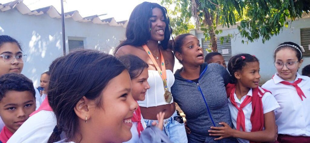 El trayecto hasta su hogar, ubicado en el populoso Reparto Cuba Libre, comprende varias paradas para el encuentro de la afición deportiva con la campeona mundial de triple salto a cielo abierto y ahora doble titular en pista cubierta.