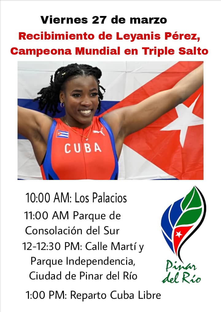 Luego de conquistar la presea dorada en el Mundial de Atletismo Bajo Techo efectuado en Polonia, la pinareña Leyanis Pérez regresa hoy a su provincia natal.