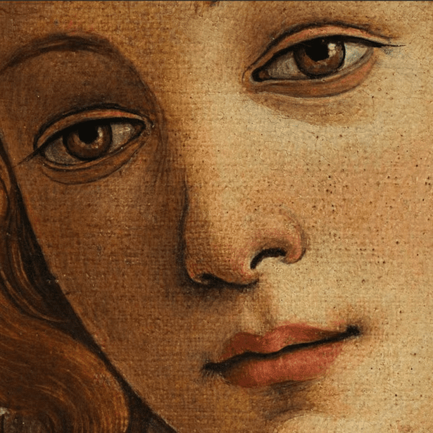 5. A simple vista puede parecer que la obra está pintada al óleo, pero Botticelli empleó la técnica de temple sobre lienzo, que le da ese aspecto delicado y mate.