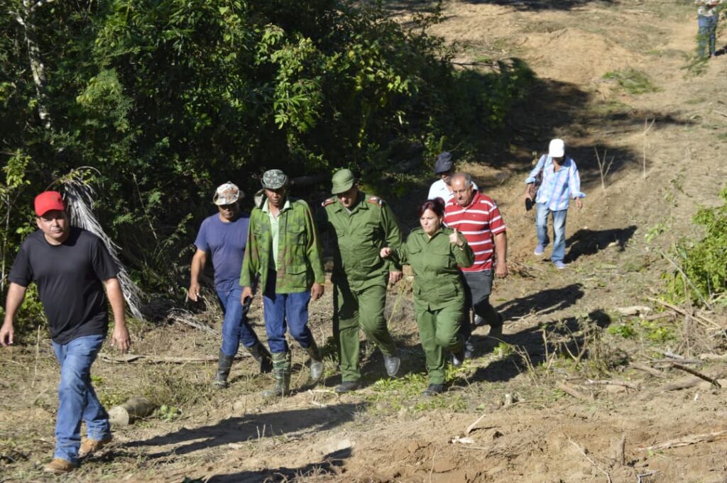 La presidenta del Consejo de Defensa Provincial, Yamilé Ramos Cordero -de conjunto con el gobernador de Pinar del Río, Eumelín González Sánchez- constata hoy la ardua faena en recorrido por áreas de las empresas Macurije y Guanahacabibes, de los municipios Guane y Sandino, respectivamente.