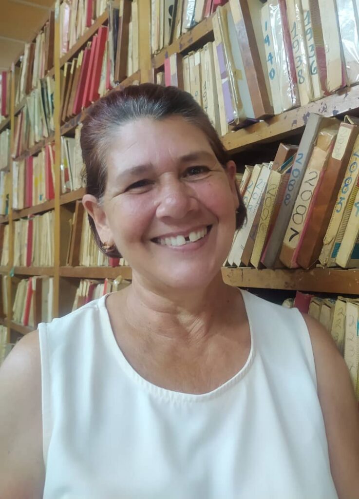 Conoce cada rincón de una cabina y  aún se emociona al recordar sus inicios en la emisora. Hilda Huette González cuenta que su historia con la radio comenzó a los 28 años, en 1993, primero en la fonoteca y después en el grupo de investigaciones de Guamá.