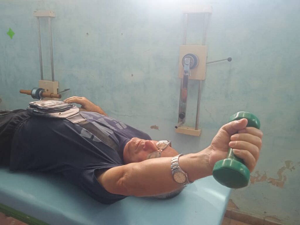 “Desde hace 2 años y medio vengo a consultarme todos los meses y a darme rehabilitación a diario. Tras el mes que pasé en casa debido a la enfermedad, me sentí rígido. Porque aunque uno hace ejercicio, no es igual que aquí en la Sala de Rehabilitación, donde existen mejores condiciones”, manifiesta Pagés Capote.