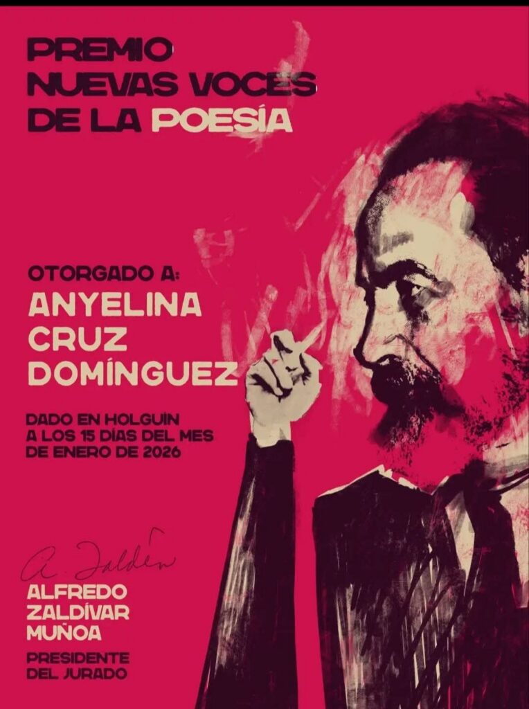 La joven escritora palaceña Anyelina Cruz Domínguez obtuvo el Premio Nuevas Voces de la Poesía 2025, que otorgaron la peña Abrirse las Constelaciones, convocada por Ediciones La Luz, y la Librería Celestino, del Centro Provincial del Libro y la Literatura en Holguín.