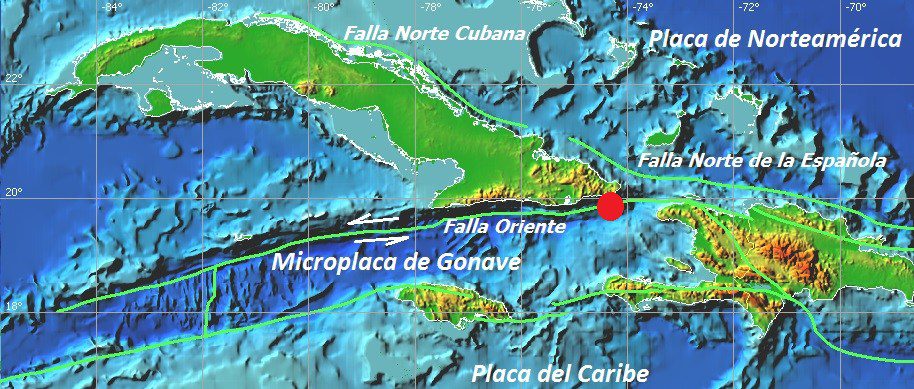 El sismo ocurrido hoy, al igual que los anteriores registrados los días 8 de febrero y 6 de marzo con magnitudes de 5.6 y 5.3 respectivamente, tuvo su origen en la zona de fallas Oriente, la cual constituye el límite de placas entre la Placa de Norteamérica (a la que pertenece Cuba) y la Microplaca de Gonave, situada al sur, señaló.