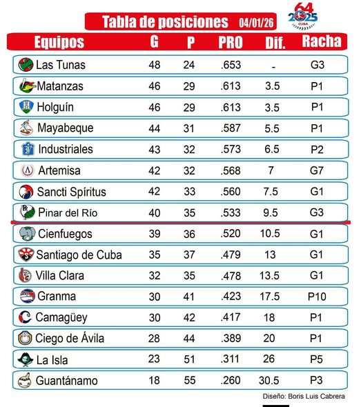 Con este resultado, los Cachorros concluyeron en el tercer puesto de la fase regular y enfrentarán en el primer duelo al mejor de cinco juegos a los Cazadores de Artemisa (sextos).