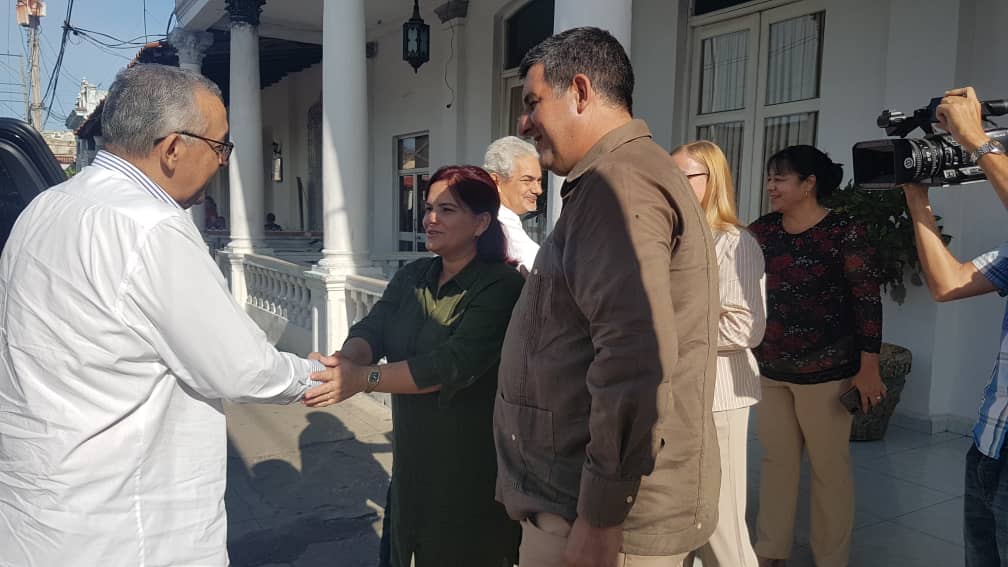 El distinguido visitante -acompañado por Vivian Josefina Alvarado Linarez, cónsul general de la nación suramericana- enumeró los acuerdos de trabajo que ya se materializan para el progreso de ambos países y agradeció el apoyo del pueblo de Cuba a Venezuela.
