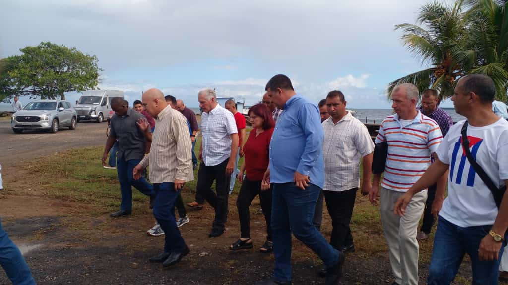 En otro momento de su recorrido, el mandatario cubano llegó hasta la Empresa Filial Pesquera Industrial de Puerto Esperanza, en el municipio Viñales.
